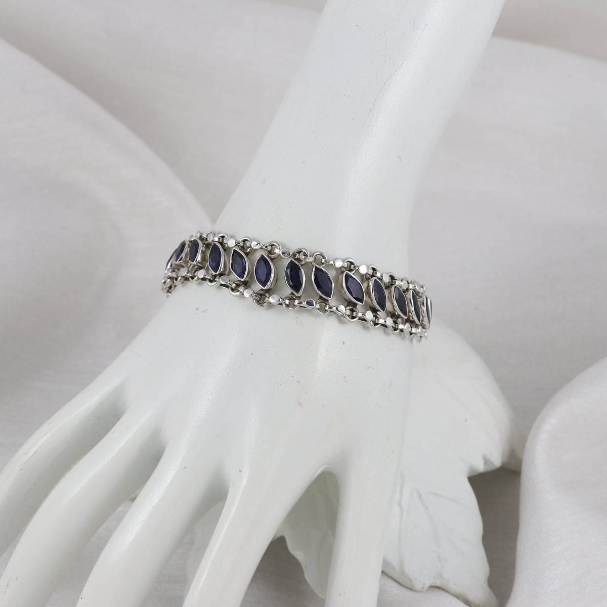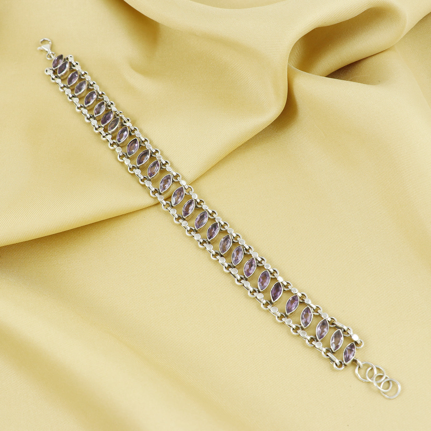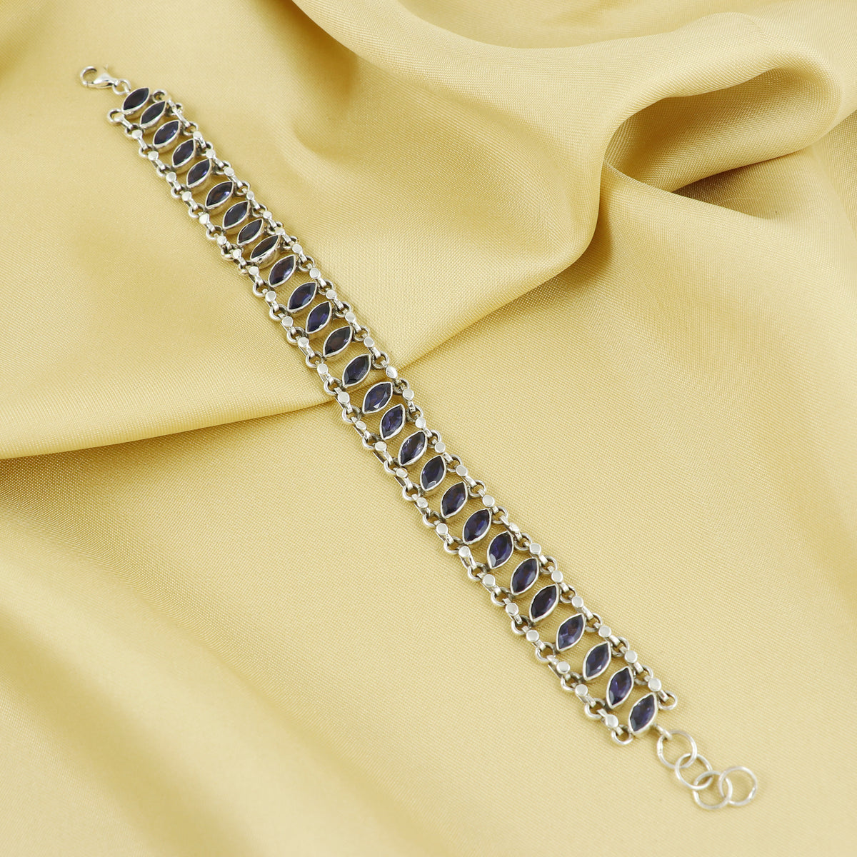 Sterling Silver Precious Designer AMETHYST, IOLITE, MOONSTONE Gemstone Bracelet