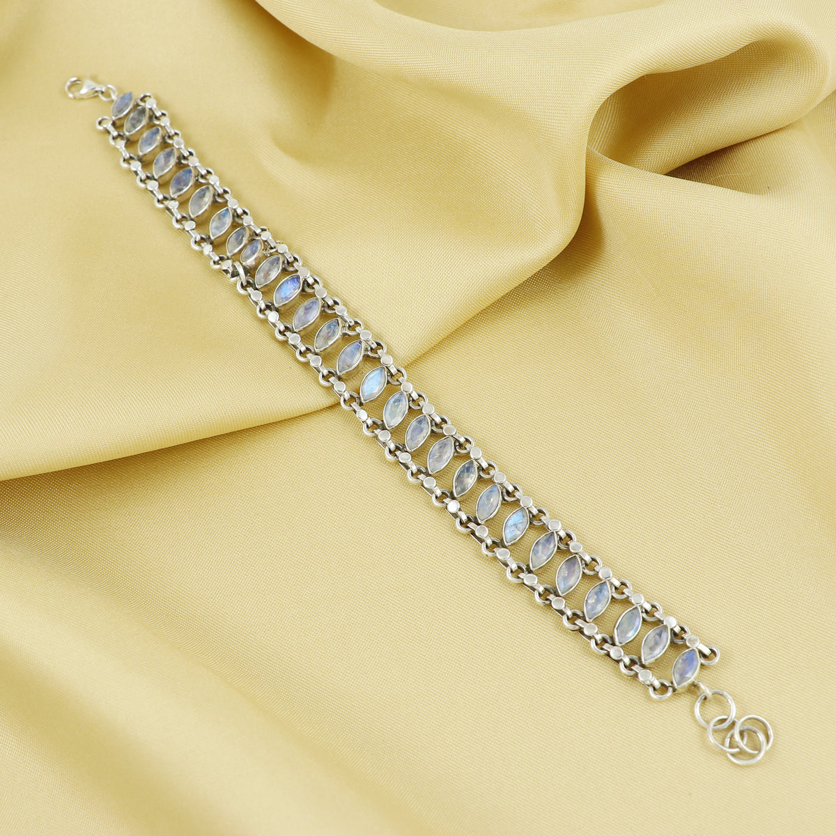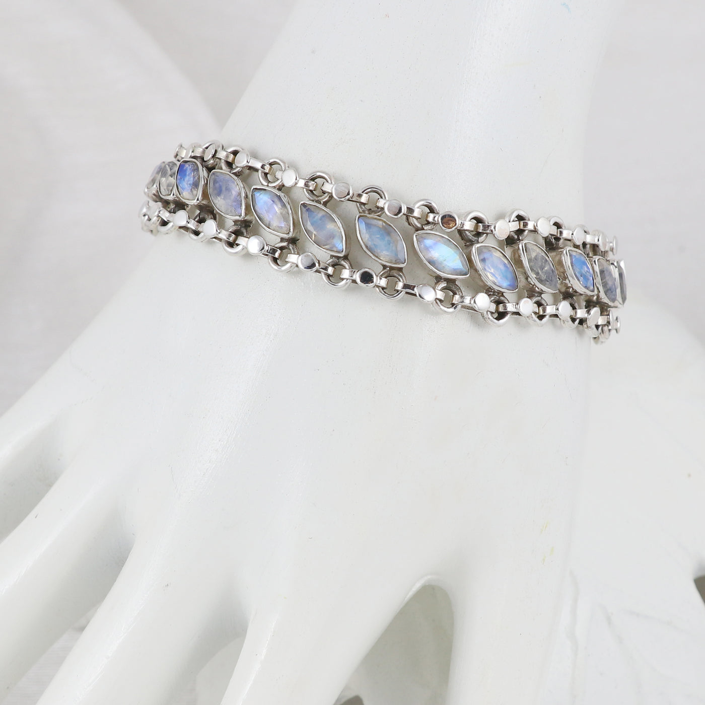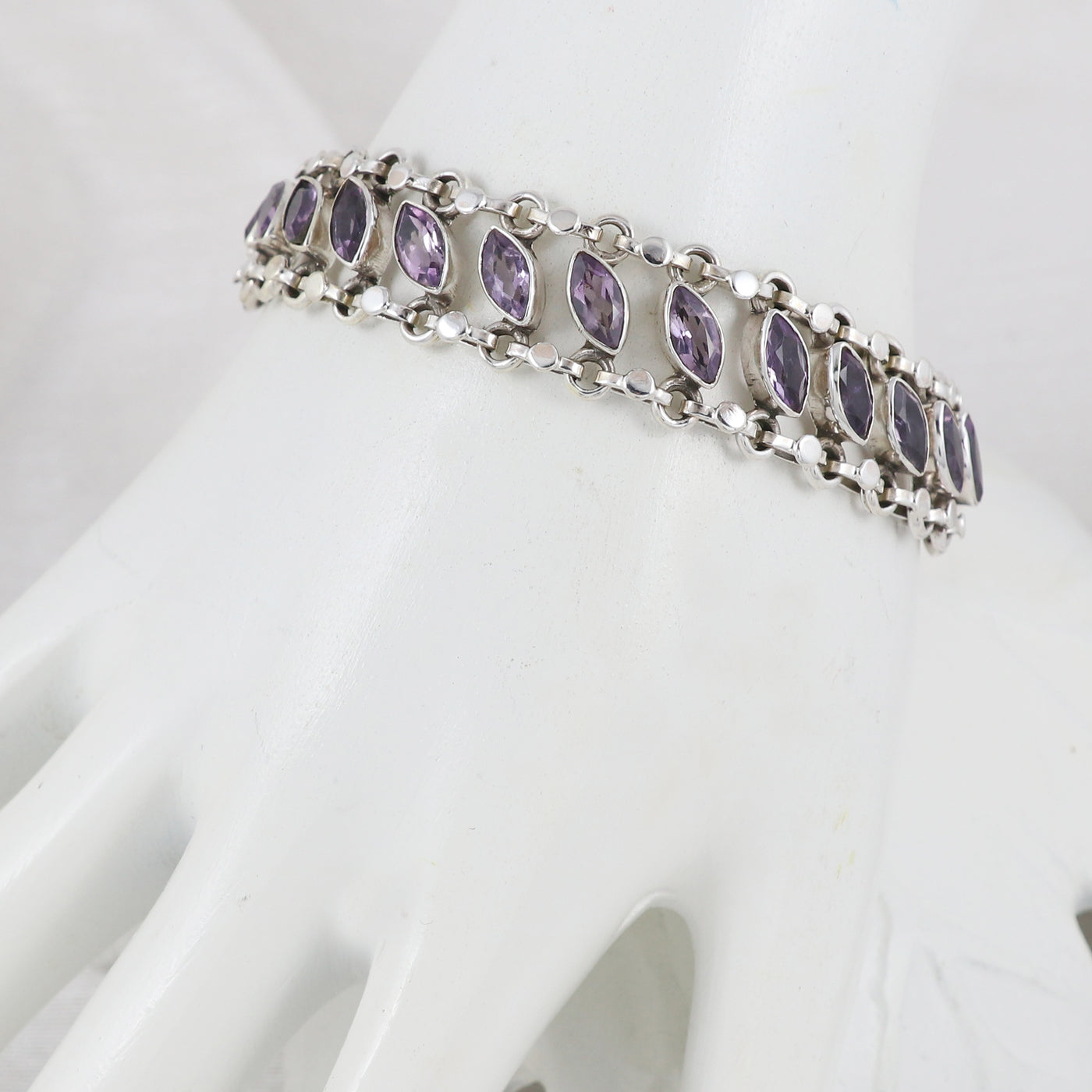 Sterling Silver Precious Designer AMETHYST, IOLITE, MOONSTONE Gemstone Bracelet