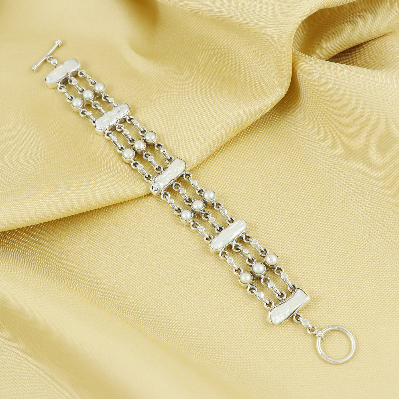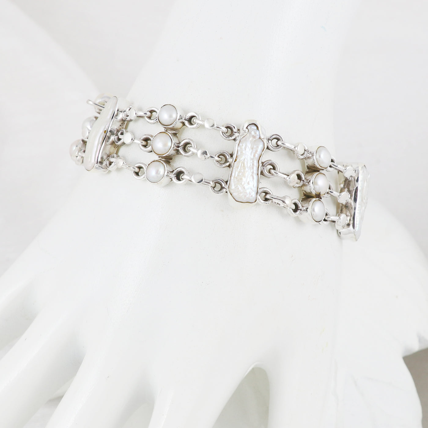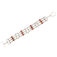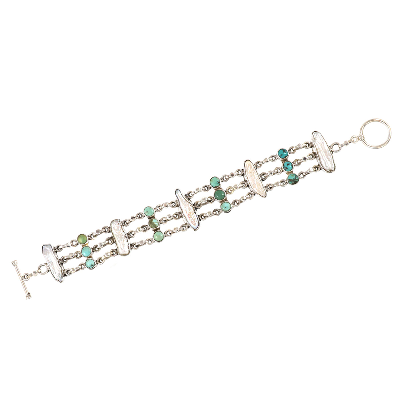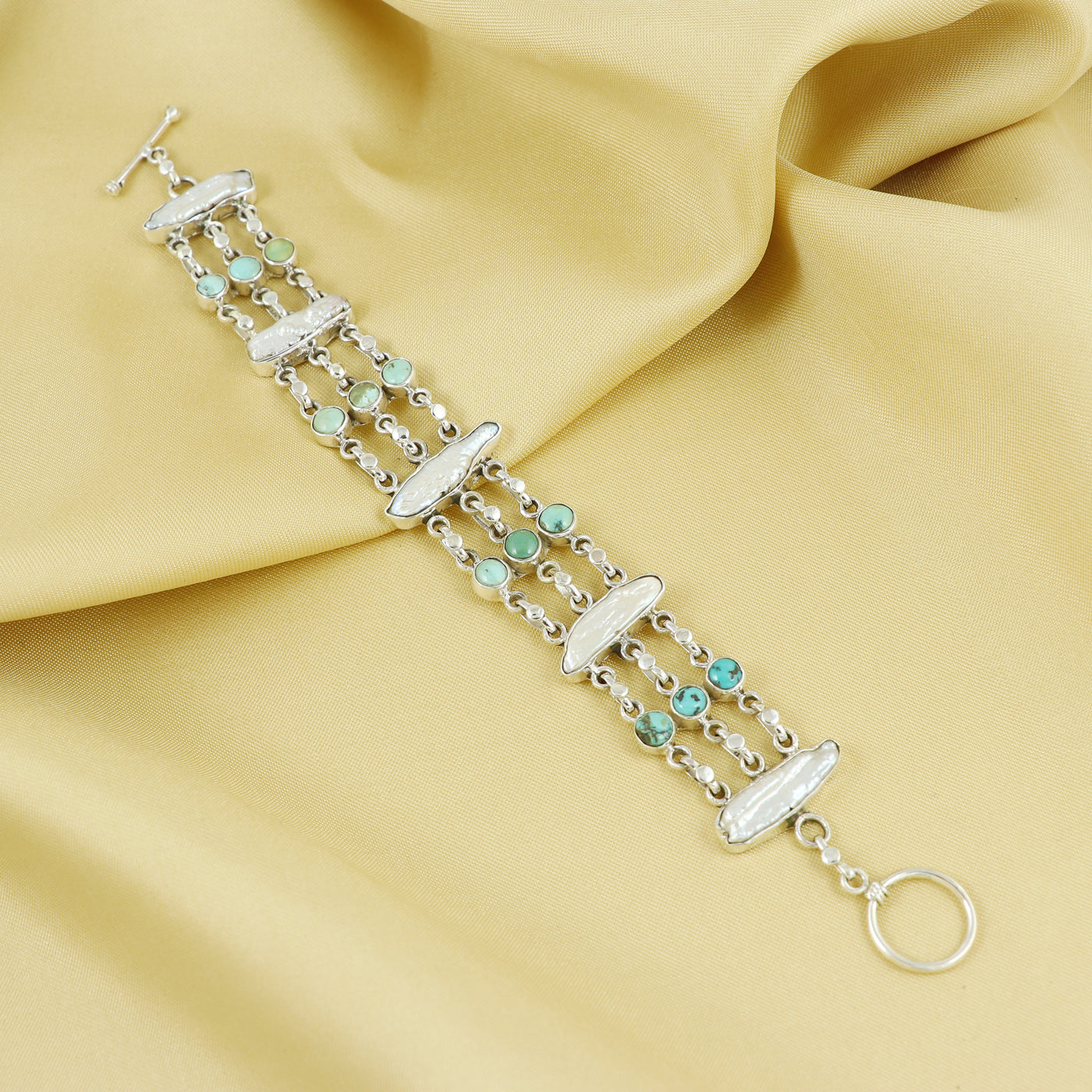 Sterling Silver Precious Designer CORAL, PEARL, TURQUOISE Gemstone Bracelet