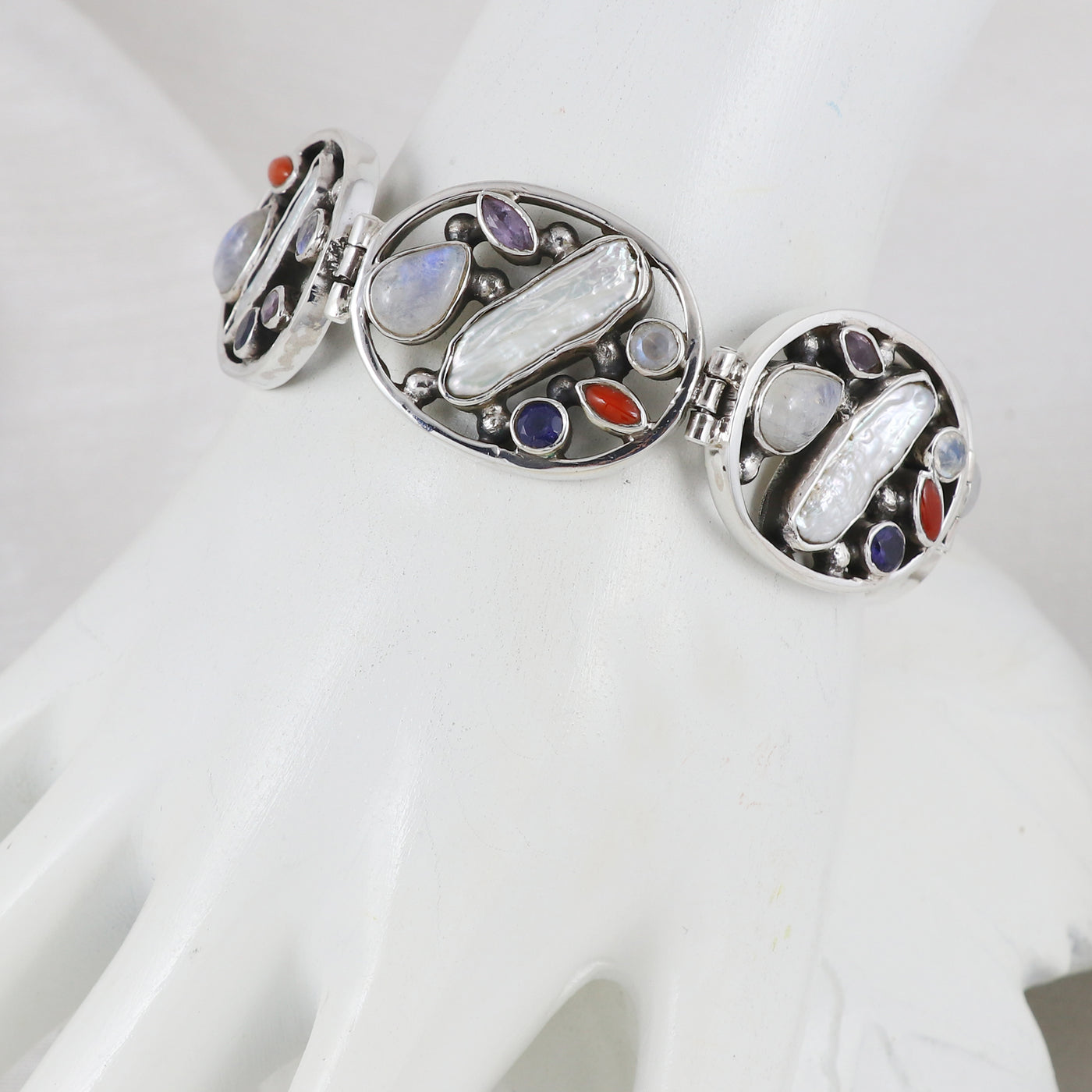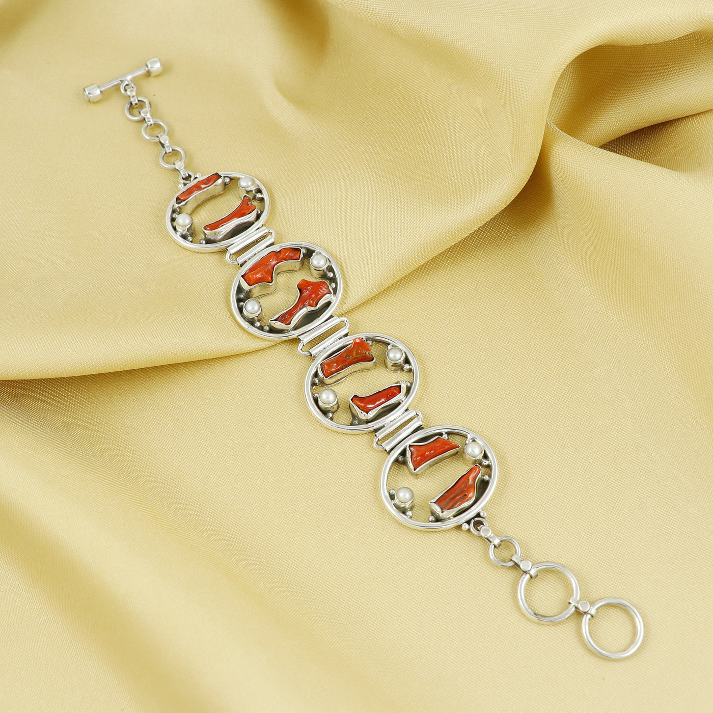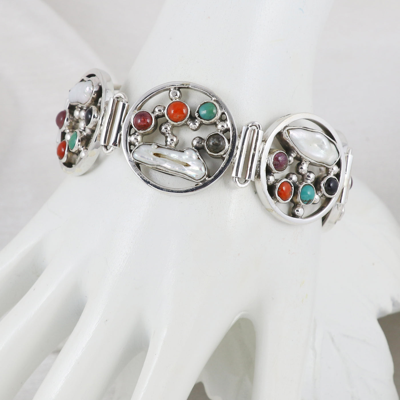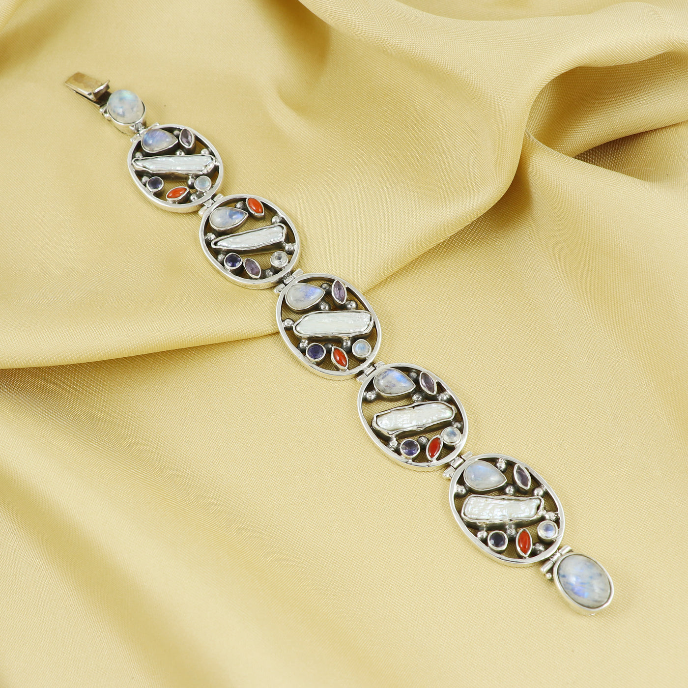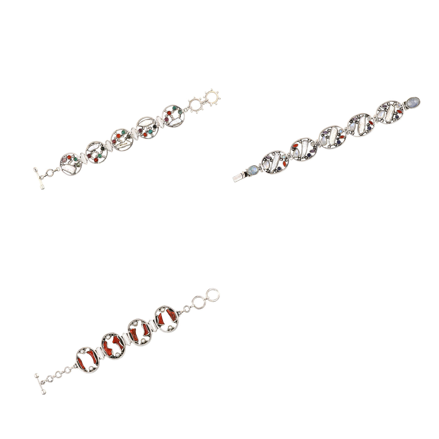 Sterling Silver Precious Designer CORAL, MULTI, MOONSTONE Gemstone Bracelet