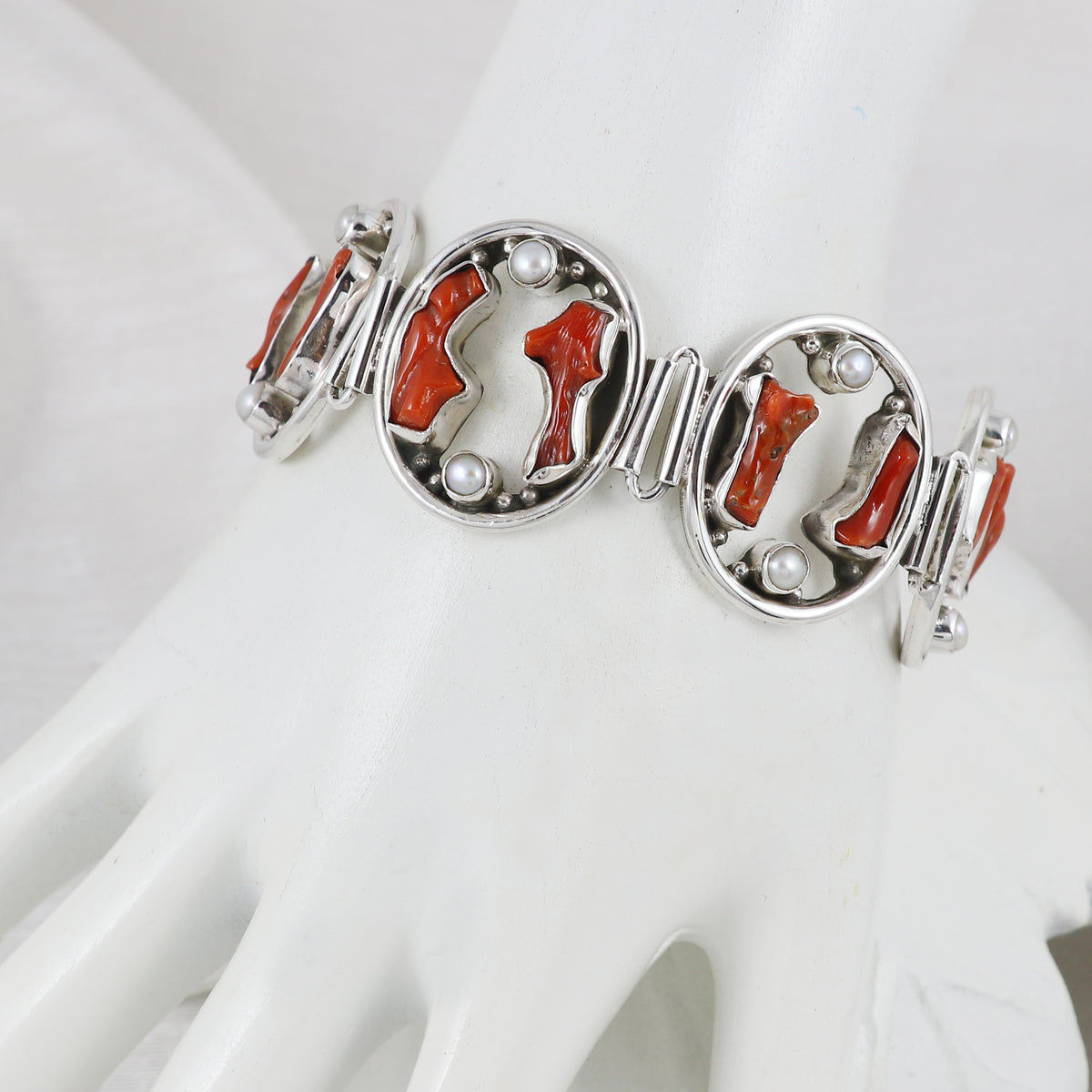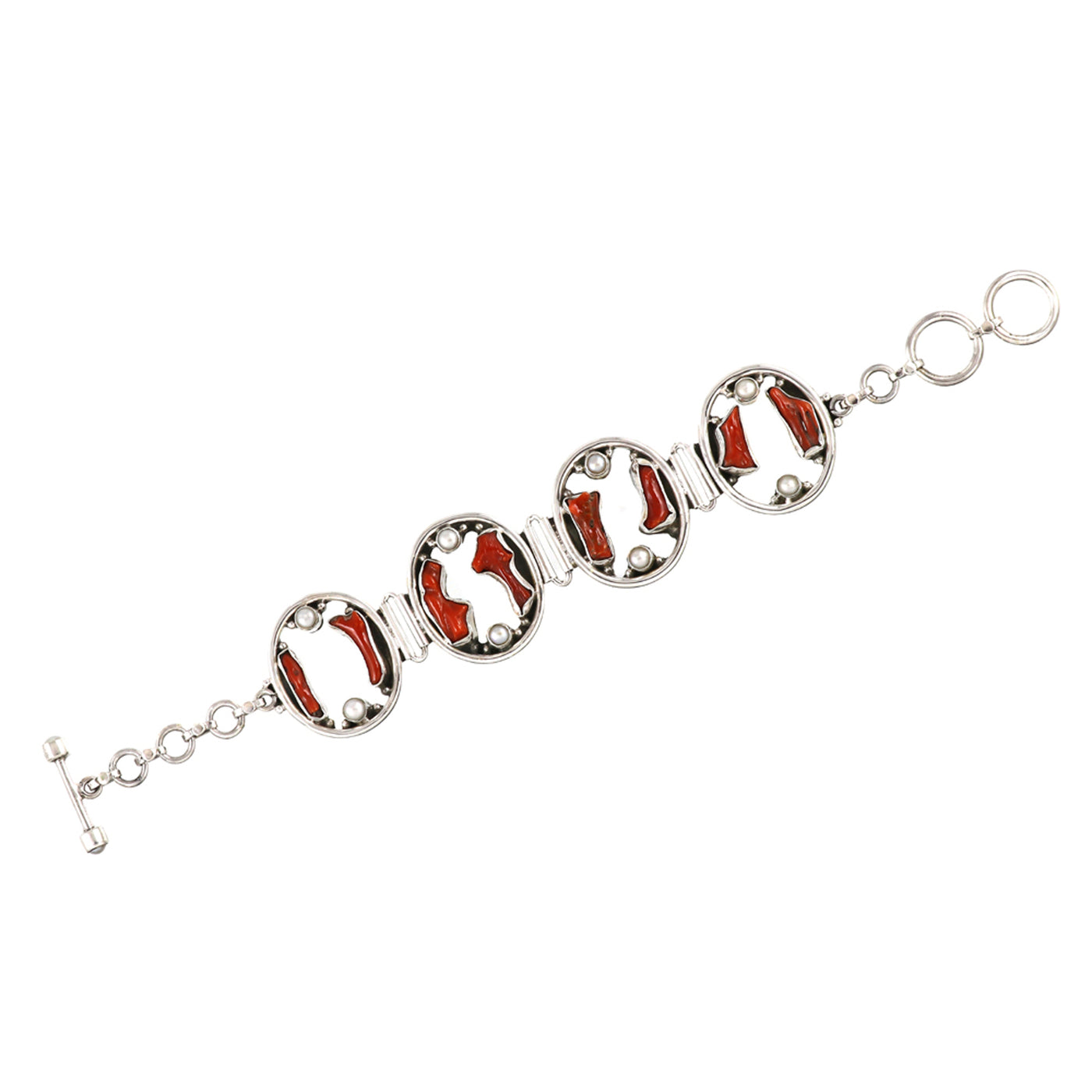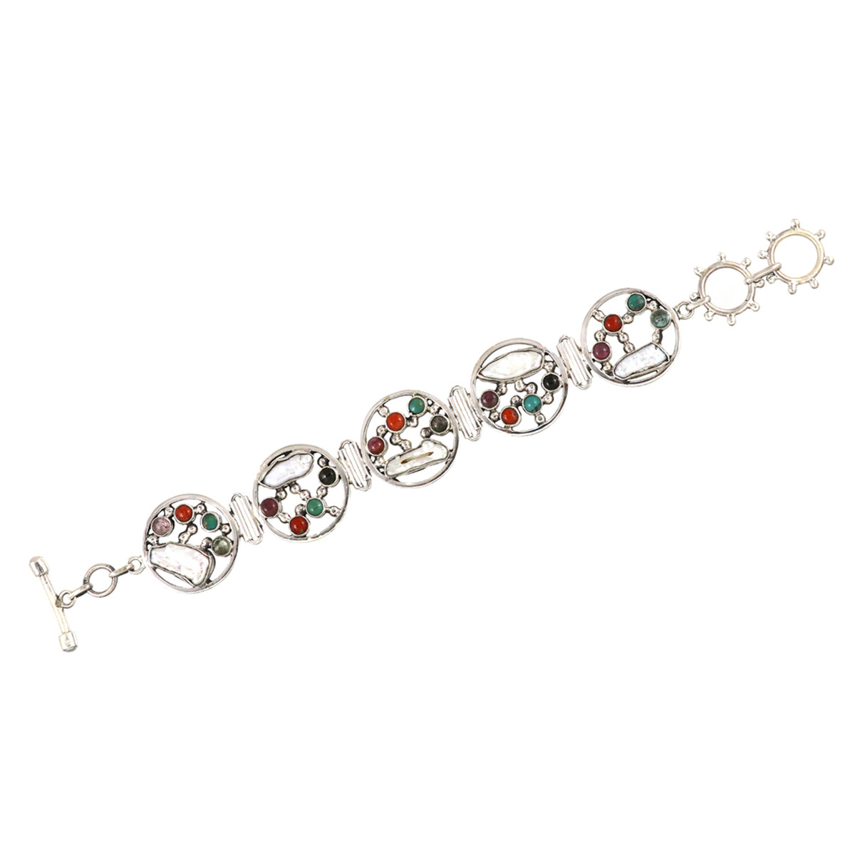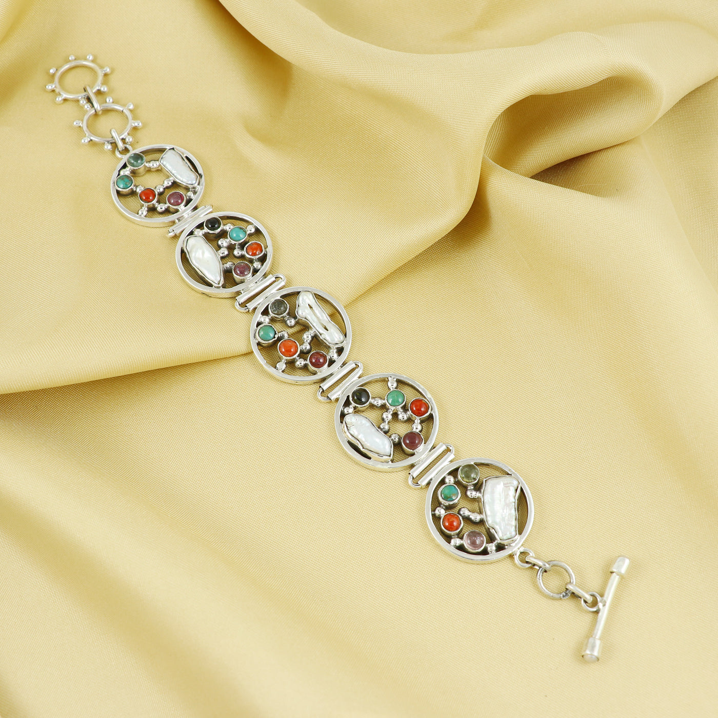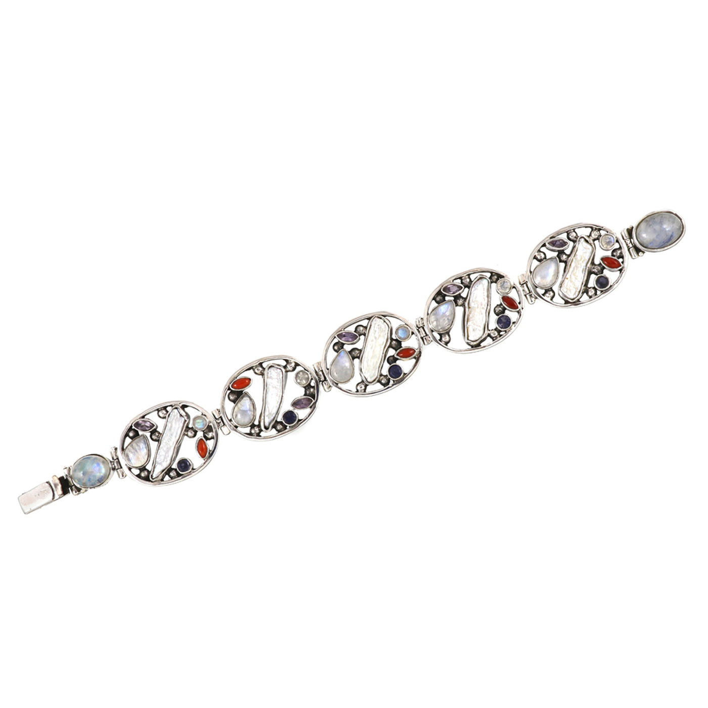 Sterling Silver Precious Designer CORAL, MULTI, MOONSTONE Gemstone Bracelet