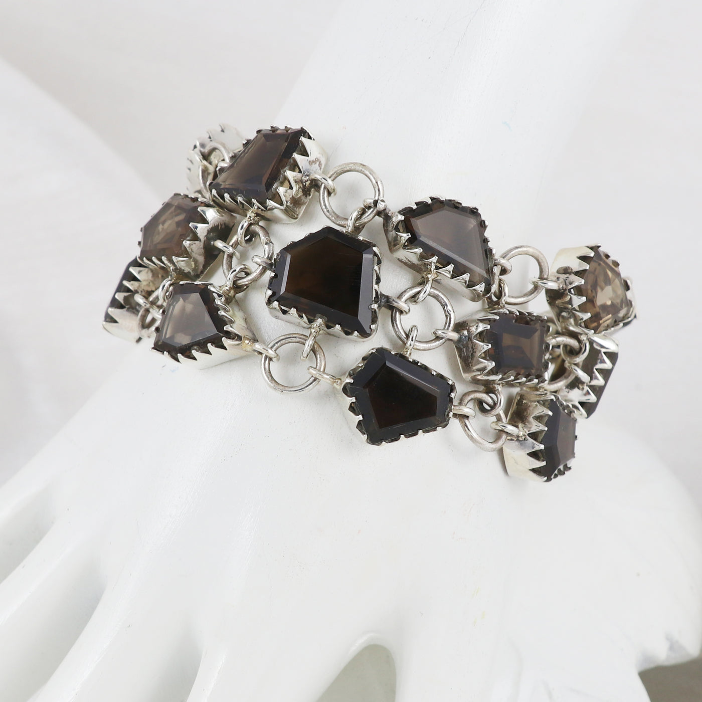 Sterling Silver Precious Designer SMOKEY QUARTZ Gemstone Bracelet