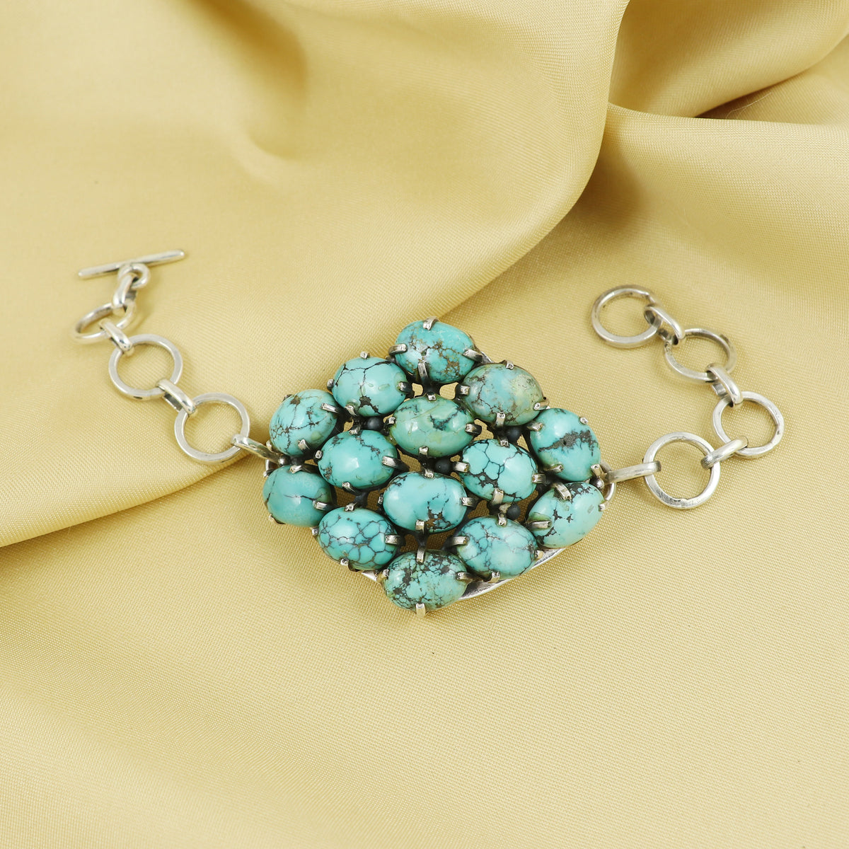 Sterling Silver Precious Designer TURQUOISE Gemstone Bracelet