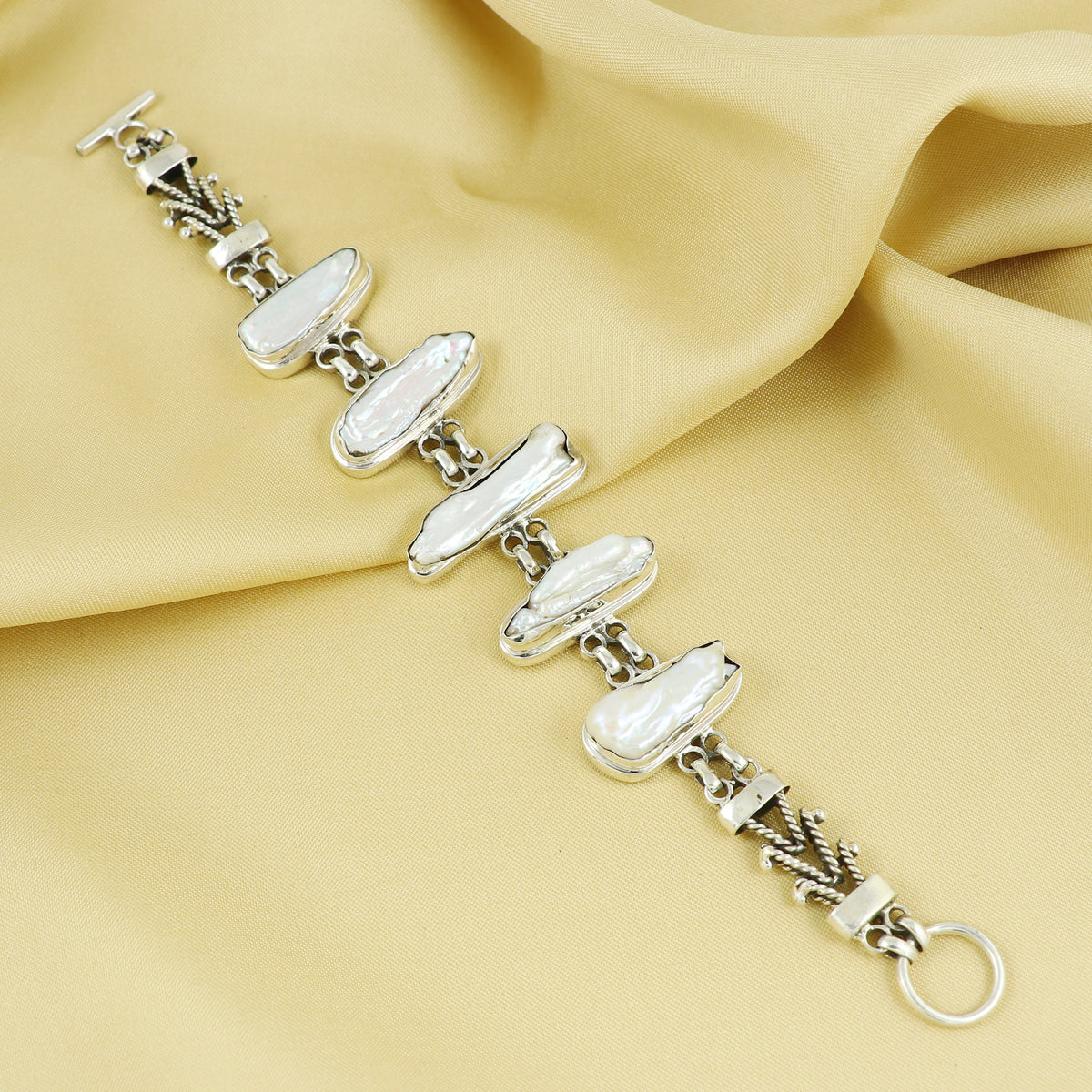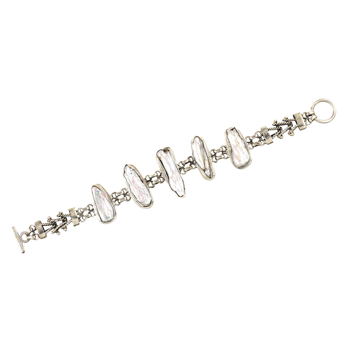 Sterling Silver Precious Designer PEARL Gemstone Bracelet