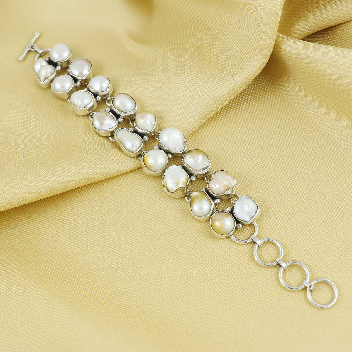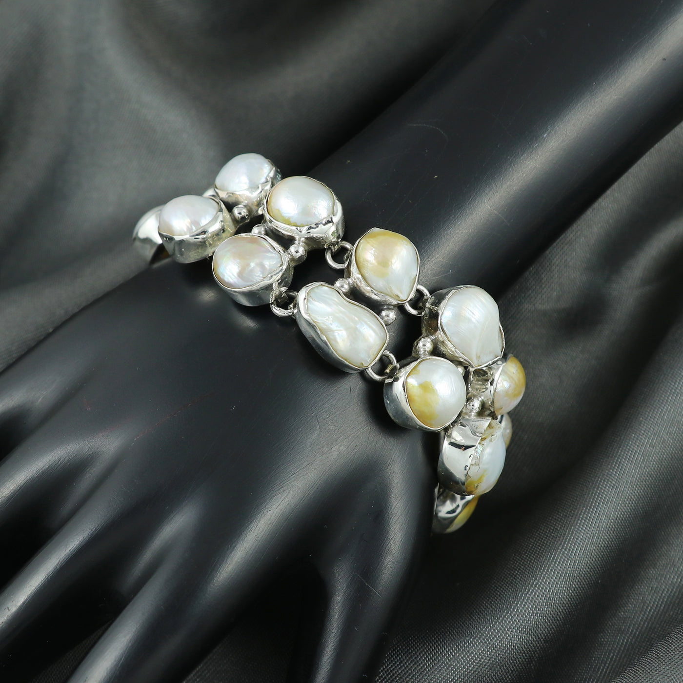 Sterling Silver Precious Designer PEARL Gemstone Bracelet