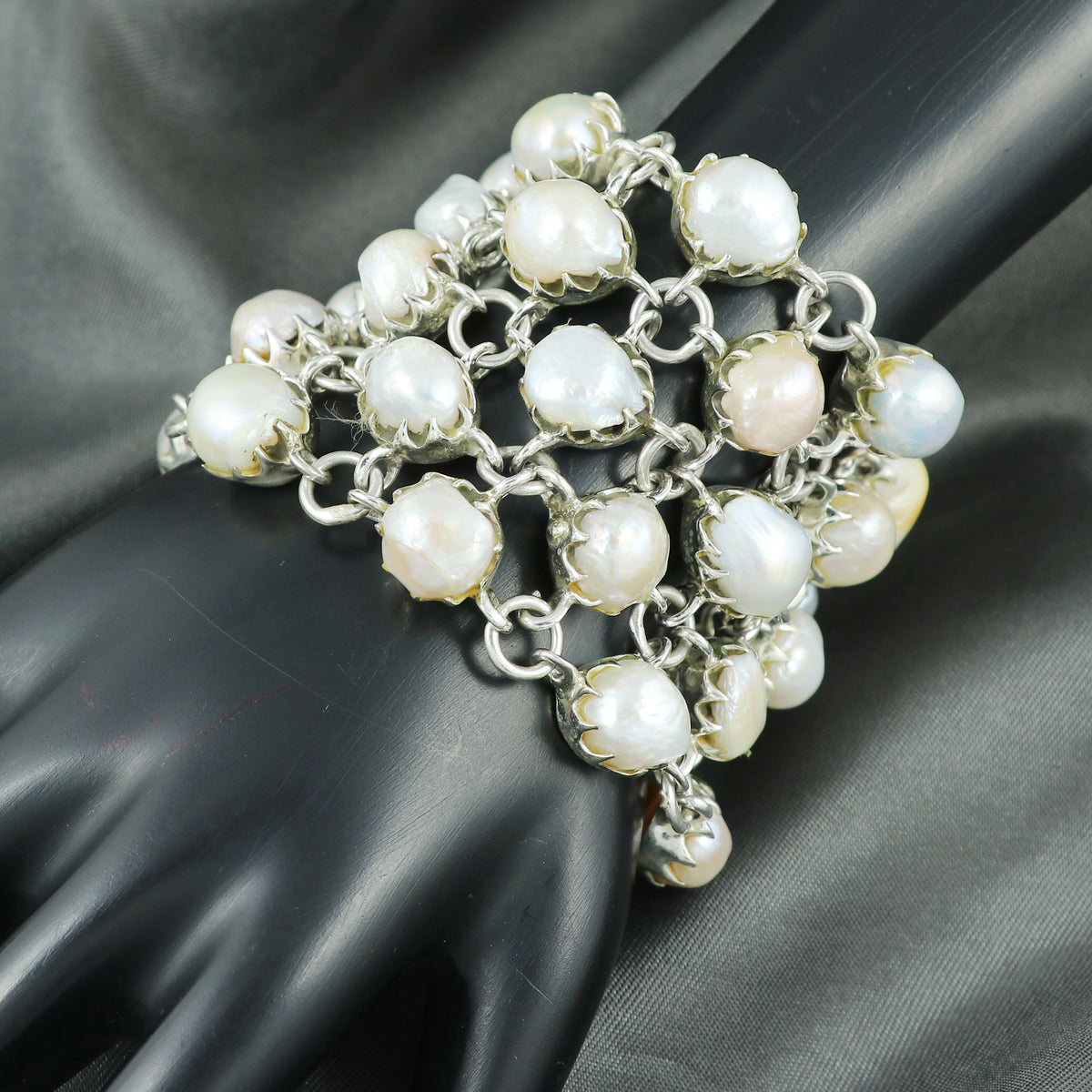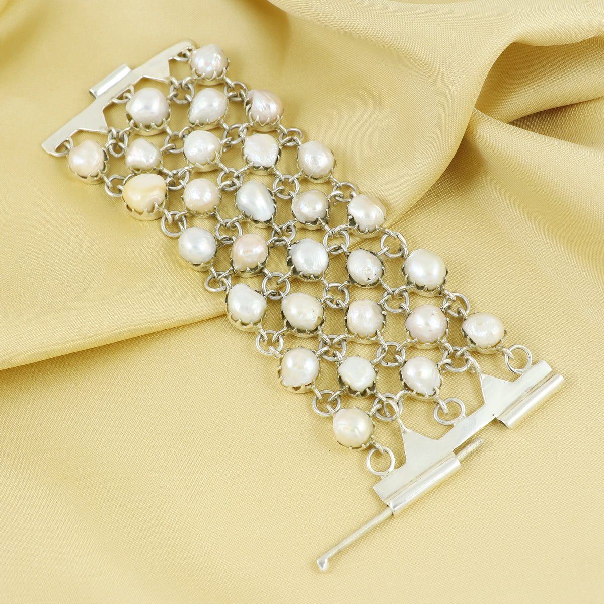 Sterling Silver Precious Designer PEARL Gemstone Bracelet