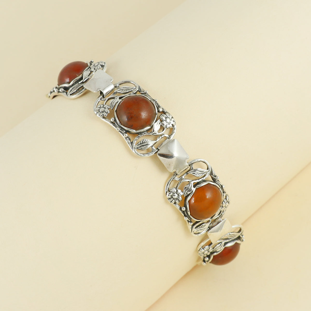 Sterling Silver Precious Designer Red Onyx Gemstone Bracelet
