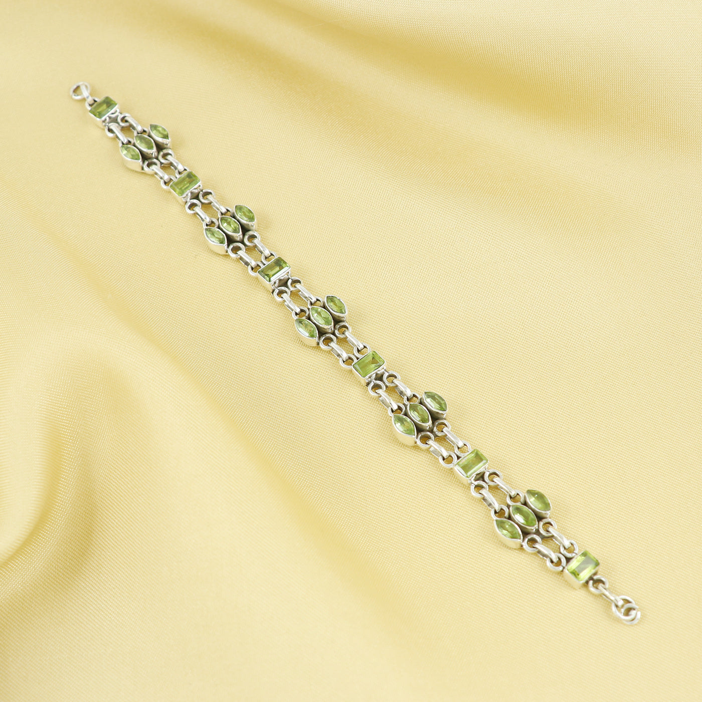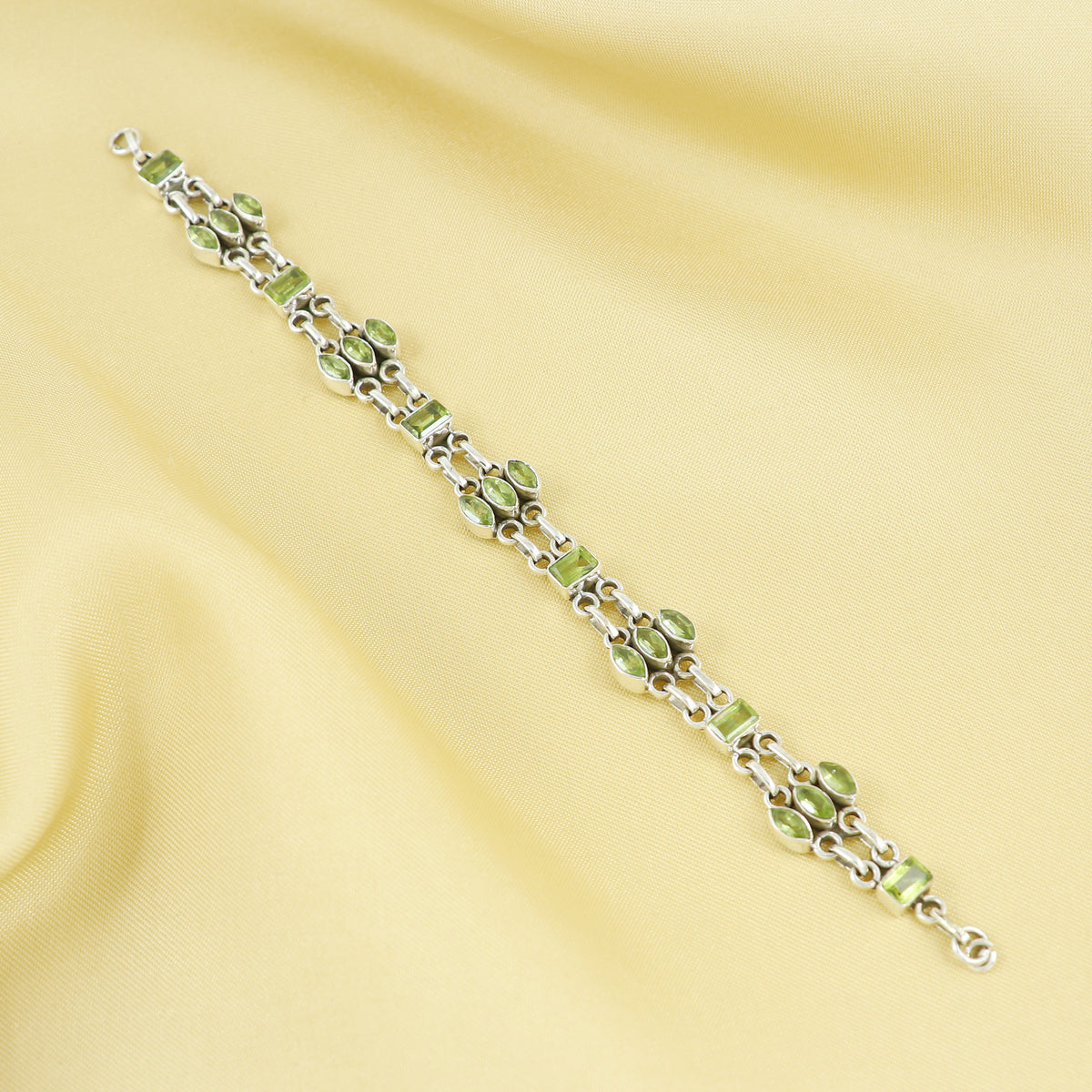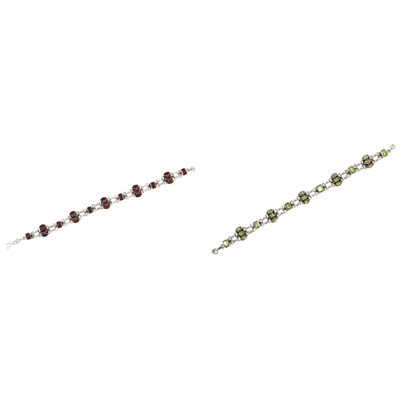 Sterling Silver Precious Designer GARNET, PERIDOT Gemstone Bracelet
