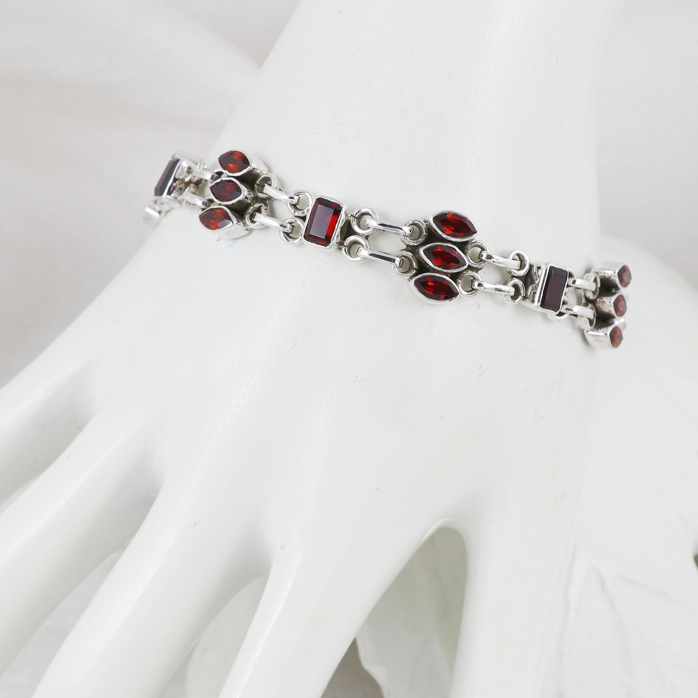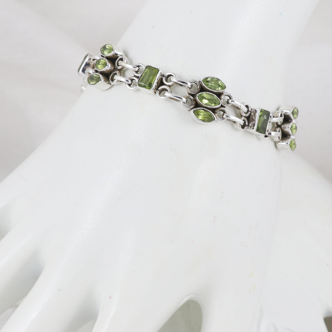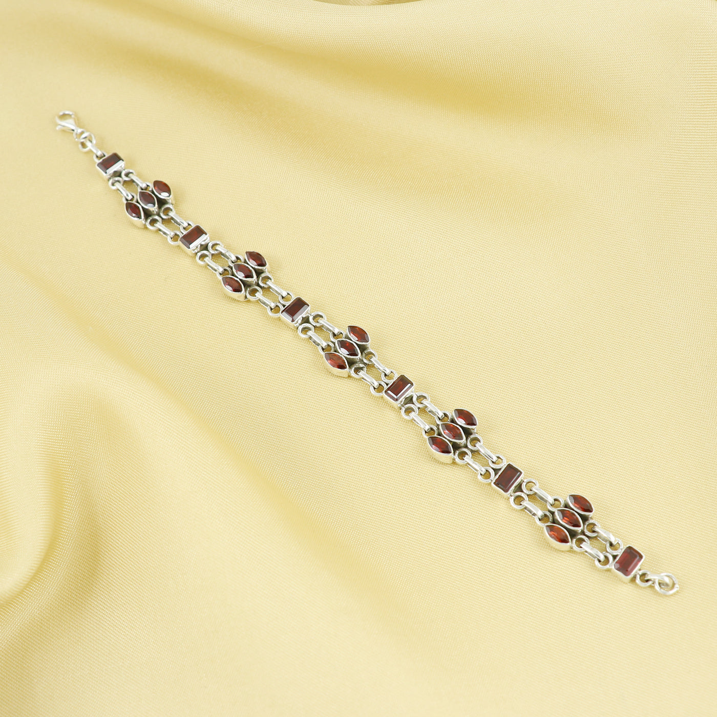 Sterling Silver Precious Designer GARNET, PERIDOT Gemstone Bracelet