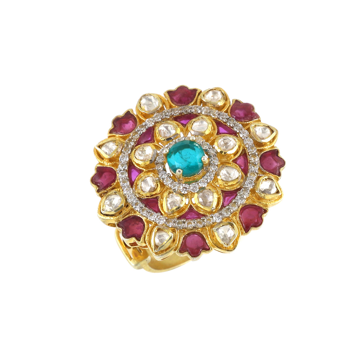 Traditional Moissanite Diamond Polki Ring in Sterling Silver, Gift For Her, Mom, Wife, Handmade Ring , Indian Silver Ethnic Jewellery