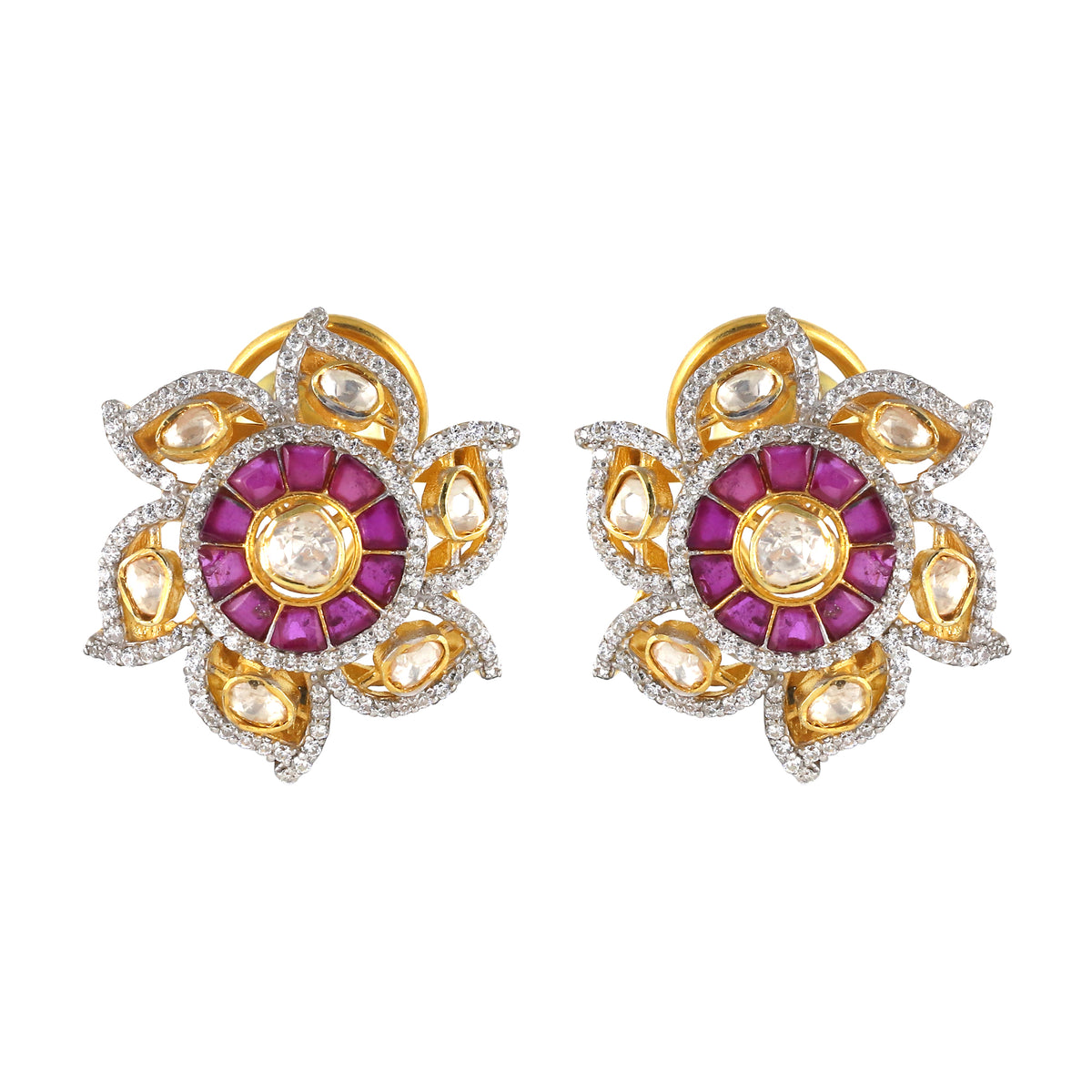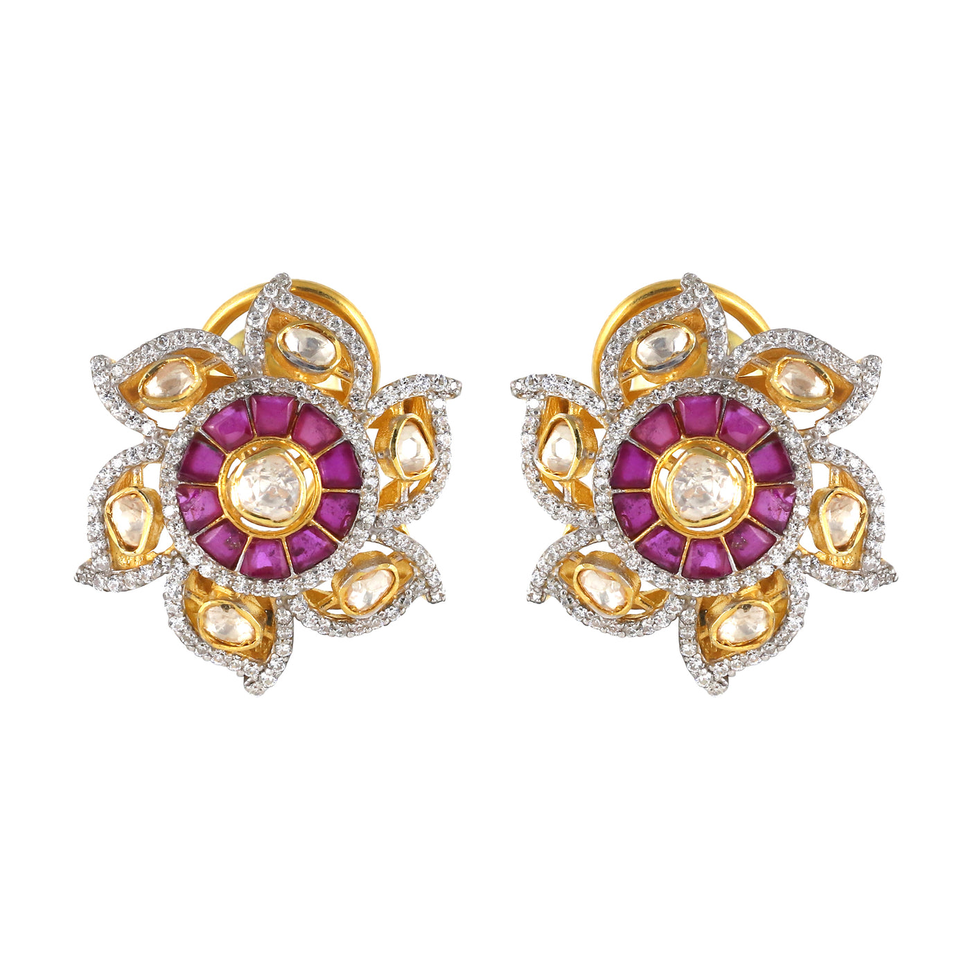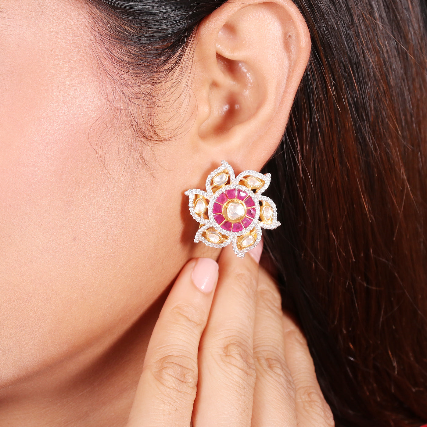 Traditional Moissanite Diamond Polki Earring in Sterling Silver, Gift For Her, Mom, Wife, Handmade Earring, Indian Silver Ethnic Jewellery