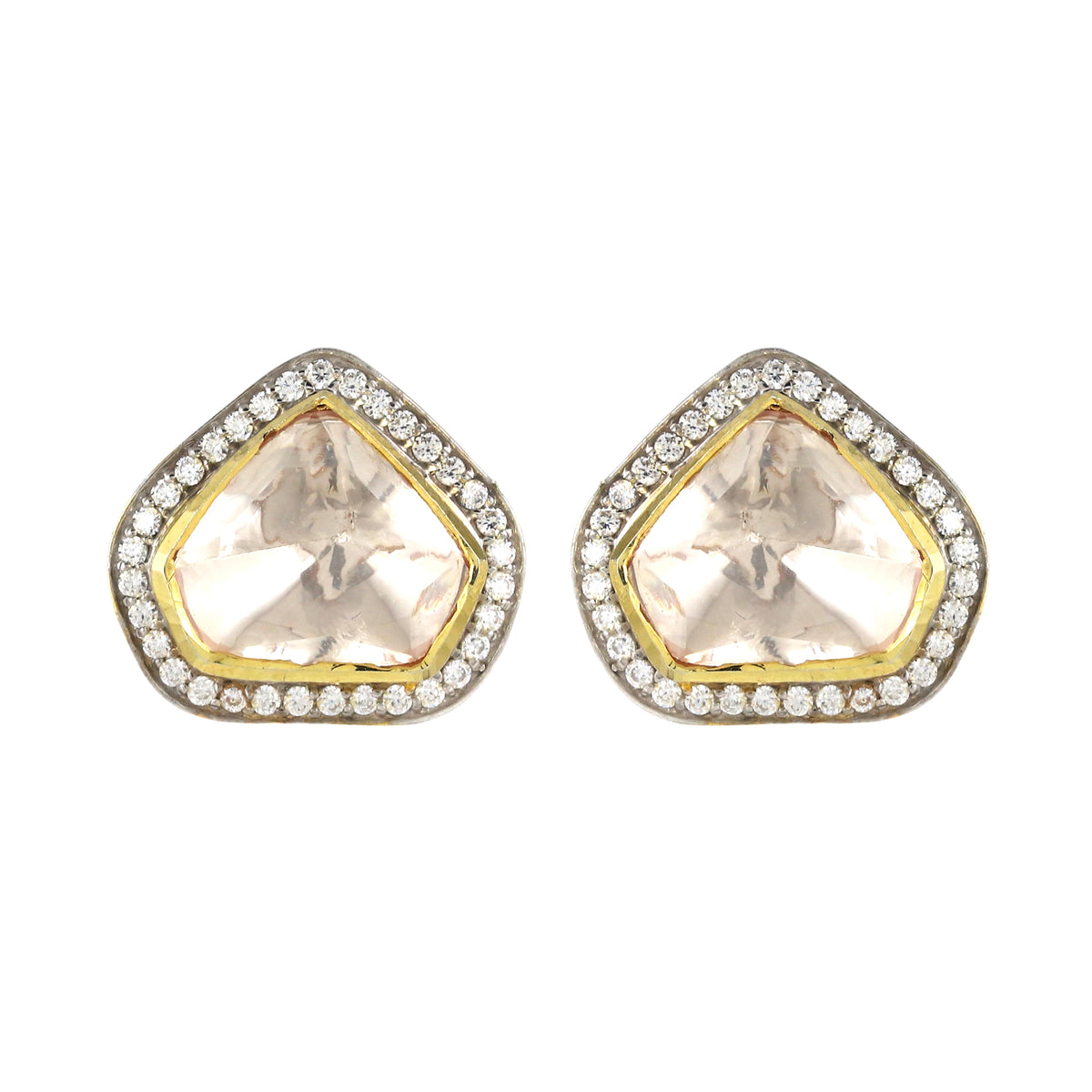 Traditional Moissanite Diamond Polki Earring in Sterling Silver, Gift For Her, Mom, Wife, Handmade Earring, Indian Silver Ethnic Jewellery
