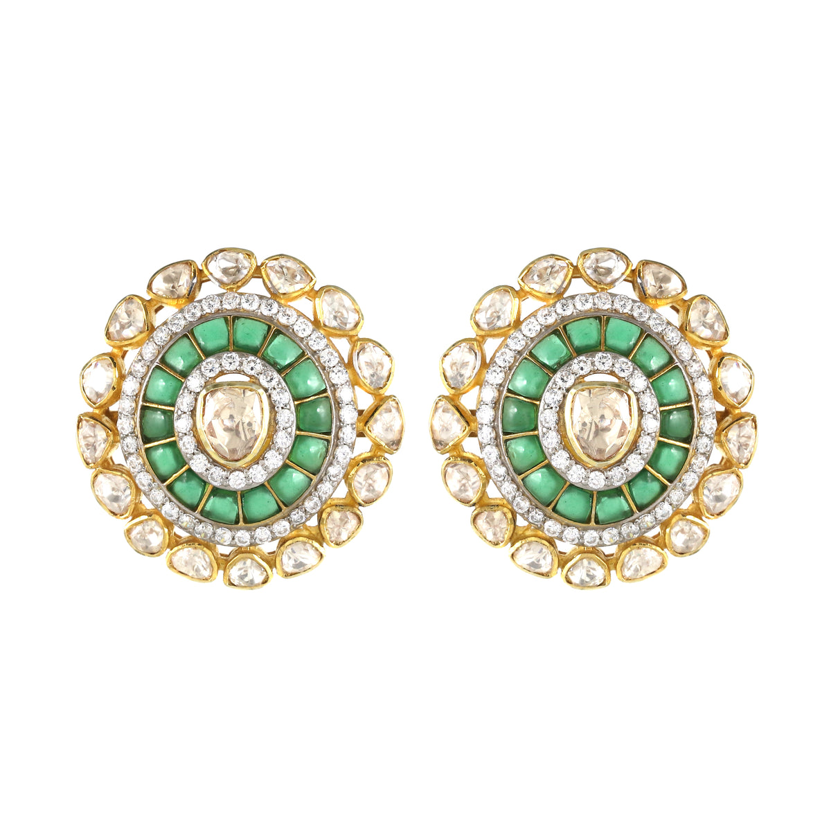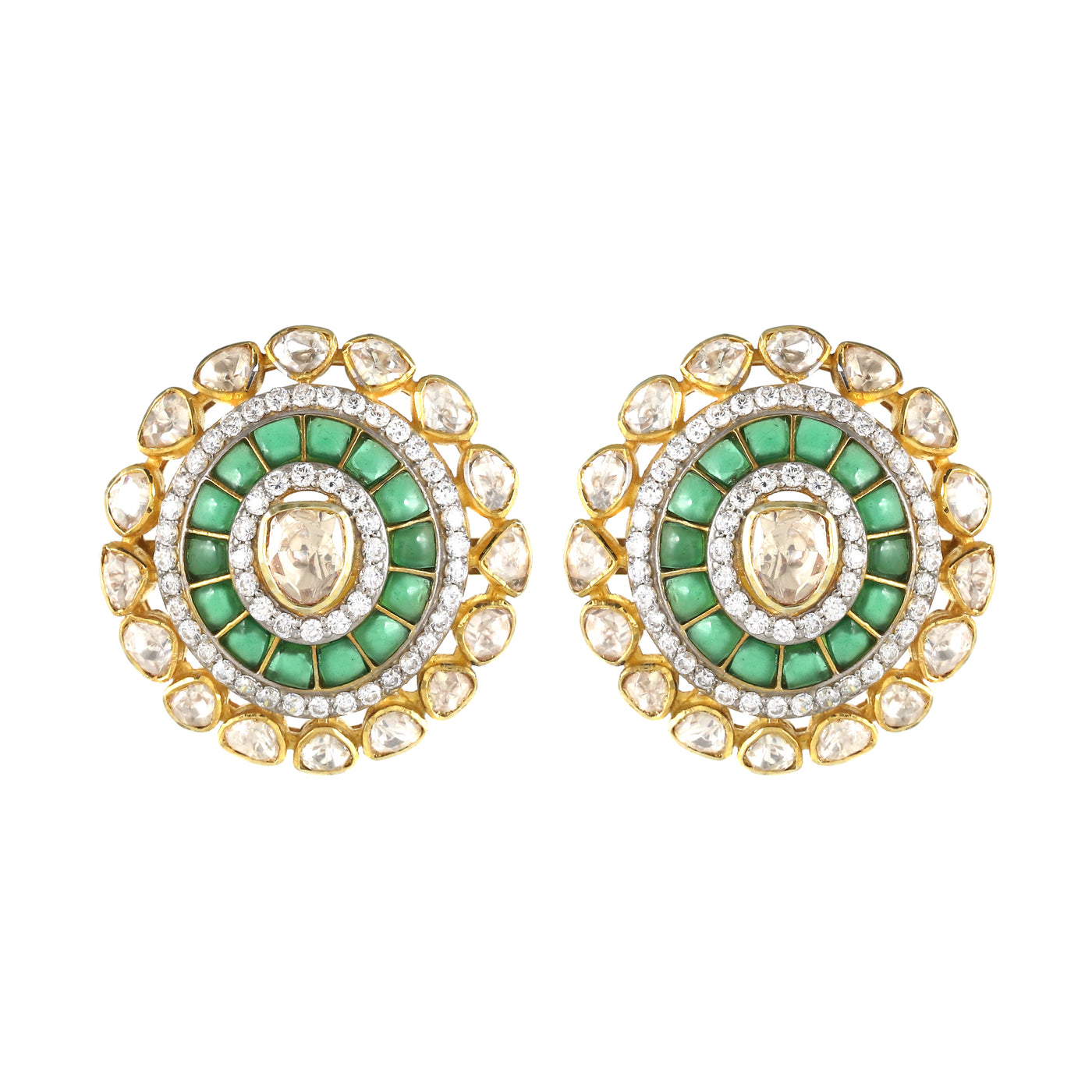 Traditional Moissanite Diamond Polki Earring in Sterling Silver, Gift For Her, Mom, Wife, Handmade Earring, Indian Silver Ethnic Jewellery