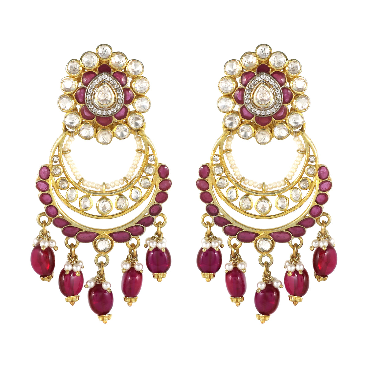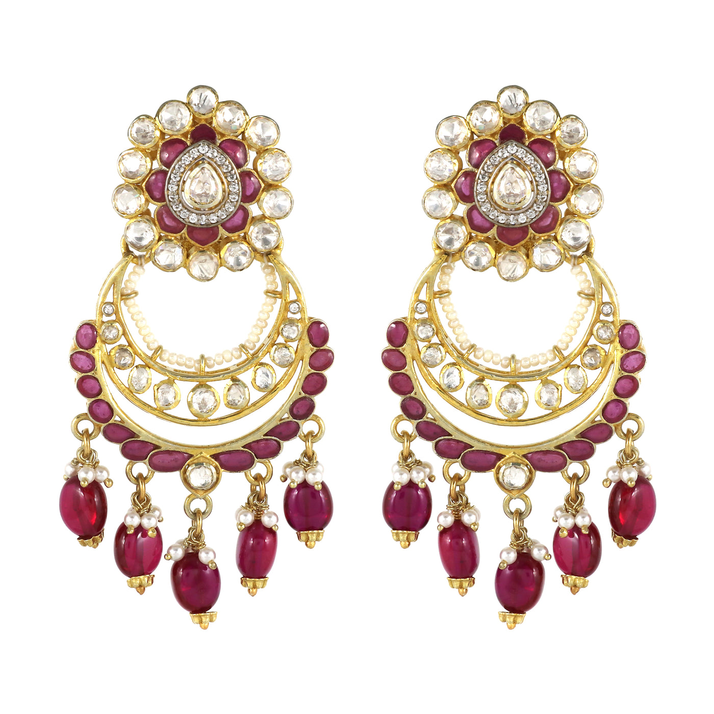 Traditional Moissanite Diamond Polki Earring in Sterling Silver, Gift For Her, Mom, Wife, Handmade Earring, Indian Silver Ethnic Jewellery