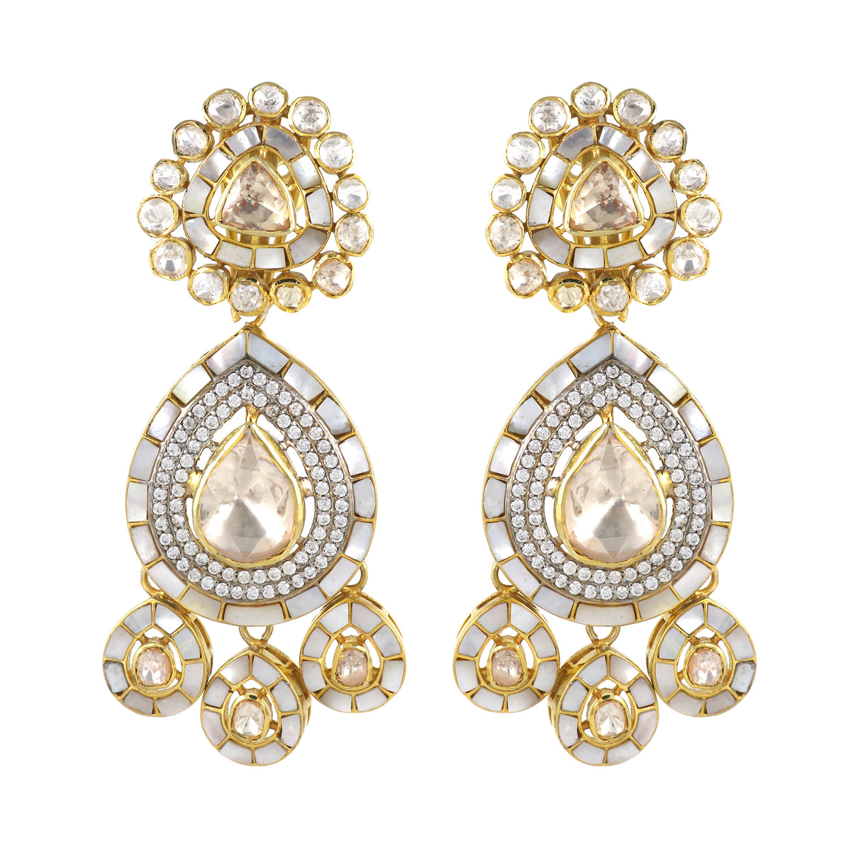 Traditional Moissanite Diamond Polki Earring in Sterling Silver, Gift For Her, Mom, Wife, Handmade Earring, Indian Silver Ethnic Jewellery
