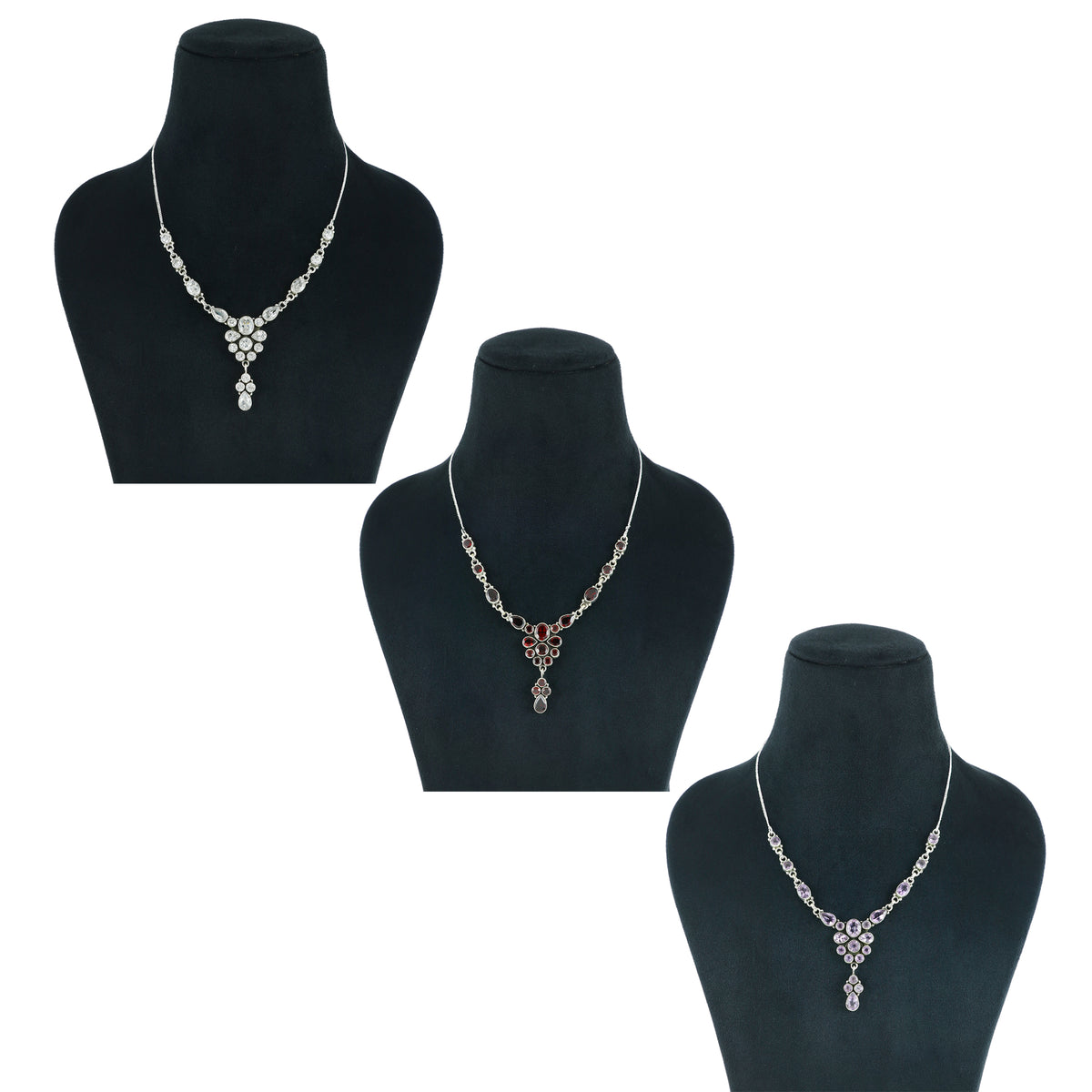 Sterling Silver Precious Semi Precious Gemstone Necklace.