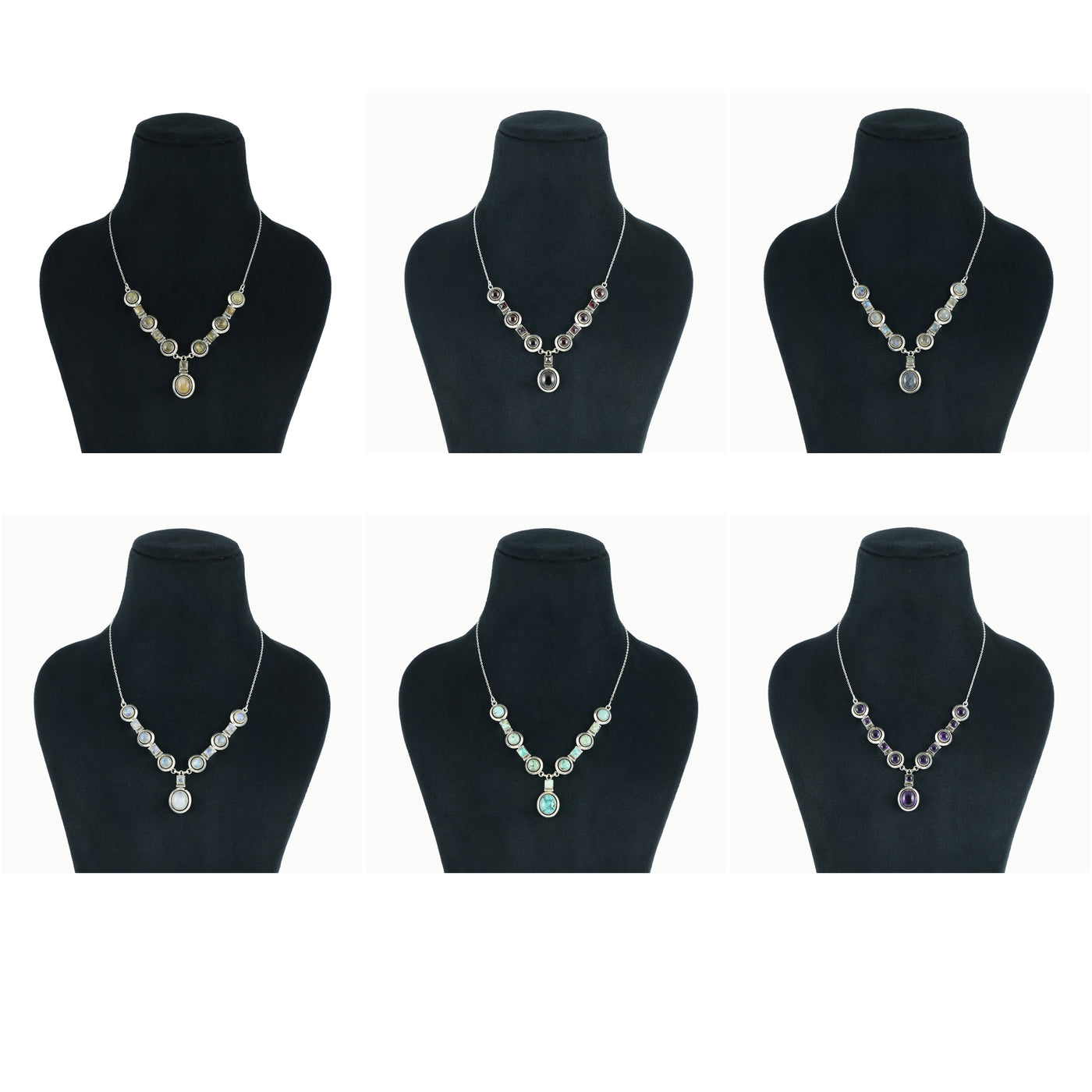Sterling Silver Precious Semi Precious Gemstone Necklace.