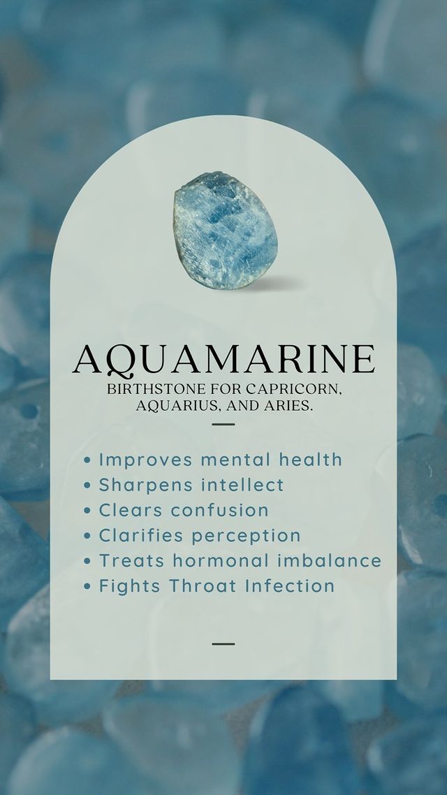 Aquamarine: Birthstone for Capricon, Aquarius, and Aries.